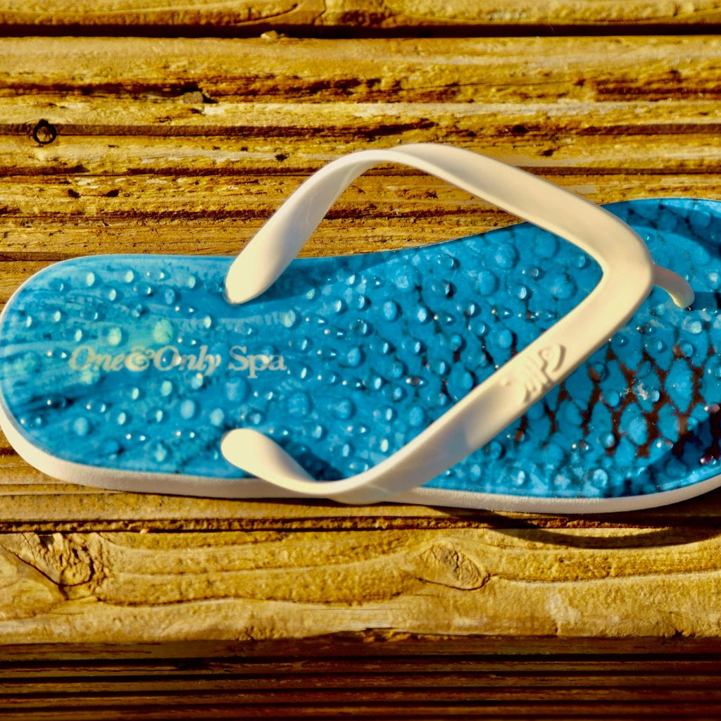 We are delighted to have created a special edition One & Only 'Spa flopZ' which are exclusively available in the beautiful Reethi Rah & Palmilla Resorts. The Spa team have selected our tropical blue 'Kingfish' design as their signature flip flops. The flip flops feature the One & Only Spa Logo.