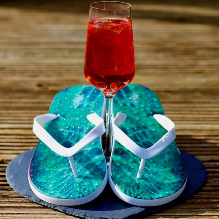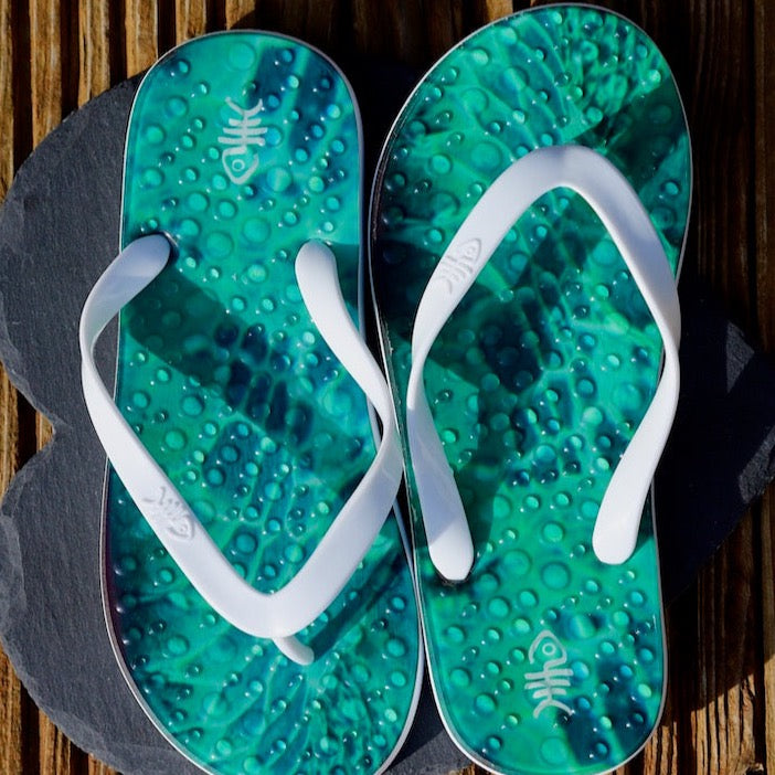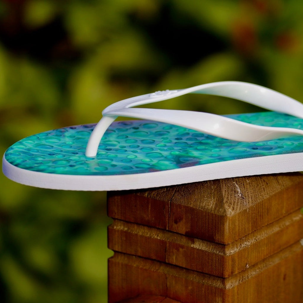 Emerald Flip Flops with White Straps