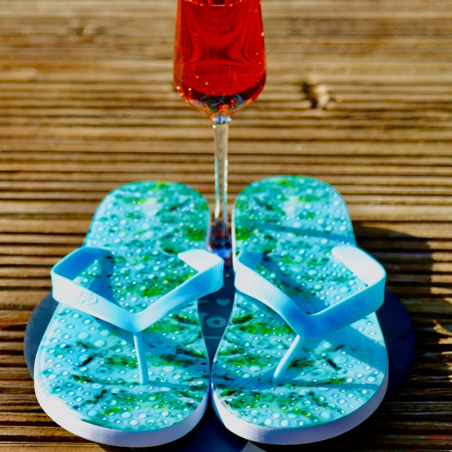 Made from: High quality pure eva outsole, flopZgel pvc compound upper layer which is hand finished for a smooth comfortable edging - simply wash clean with water.